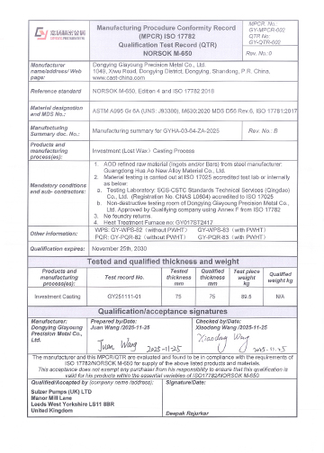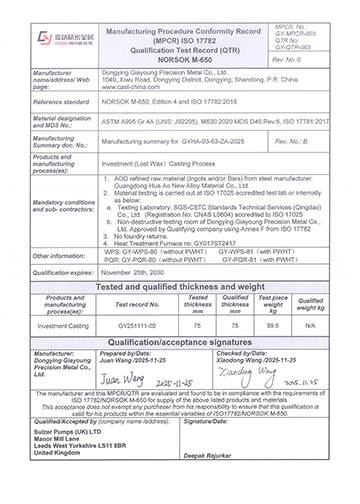NORSOK M650/ISO 17782 A995 4A Qualification
